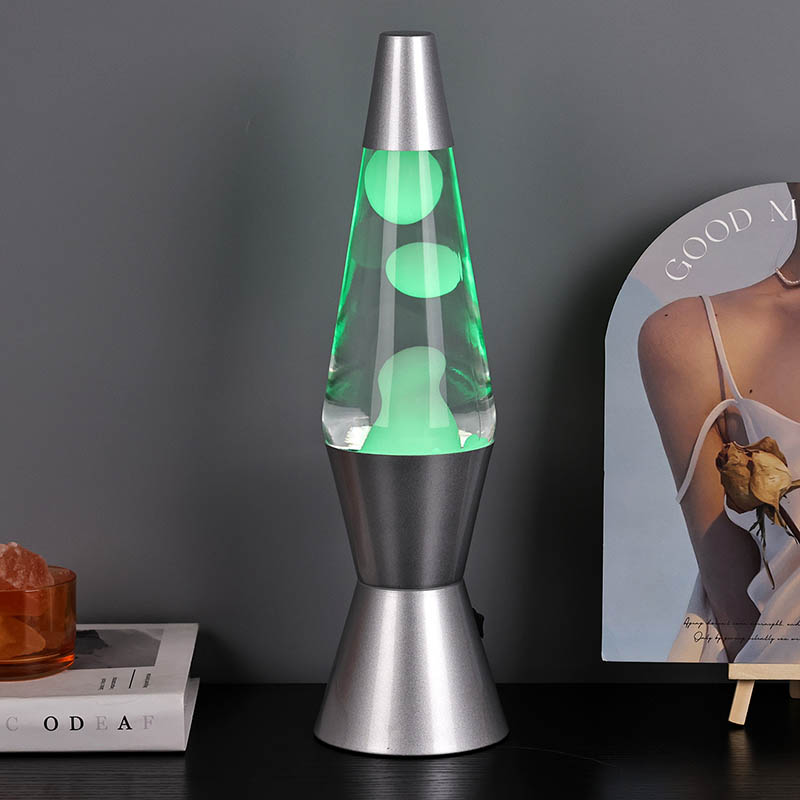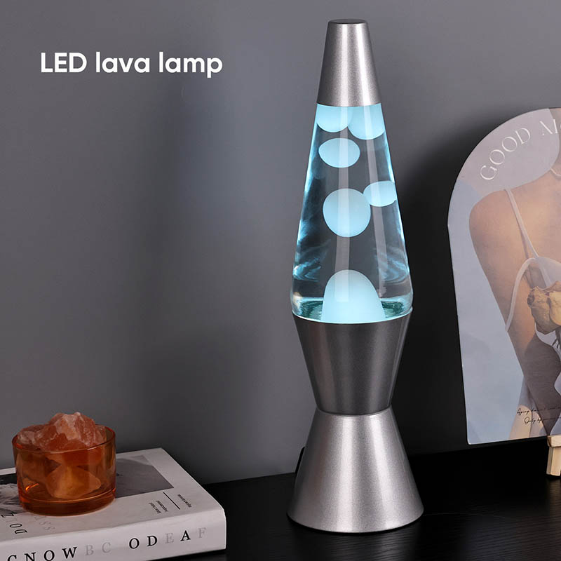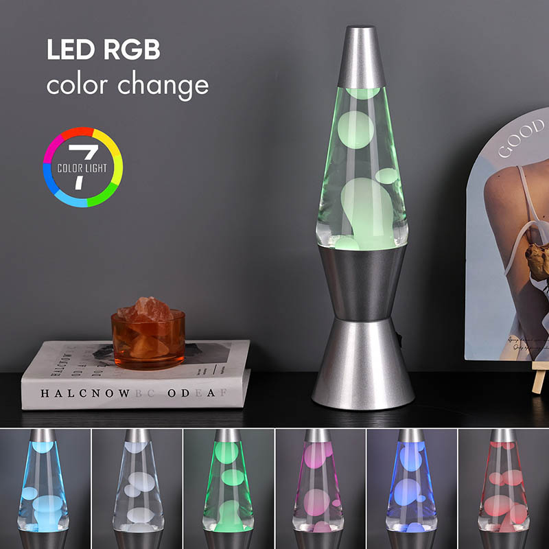 15 tommer RGB LED lavalampe har 7 farveskift i bunden. farven er hvid med lavaen.
