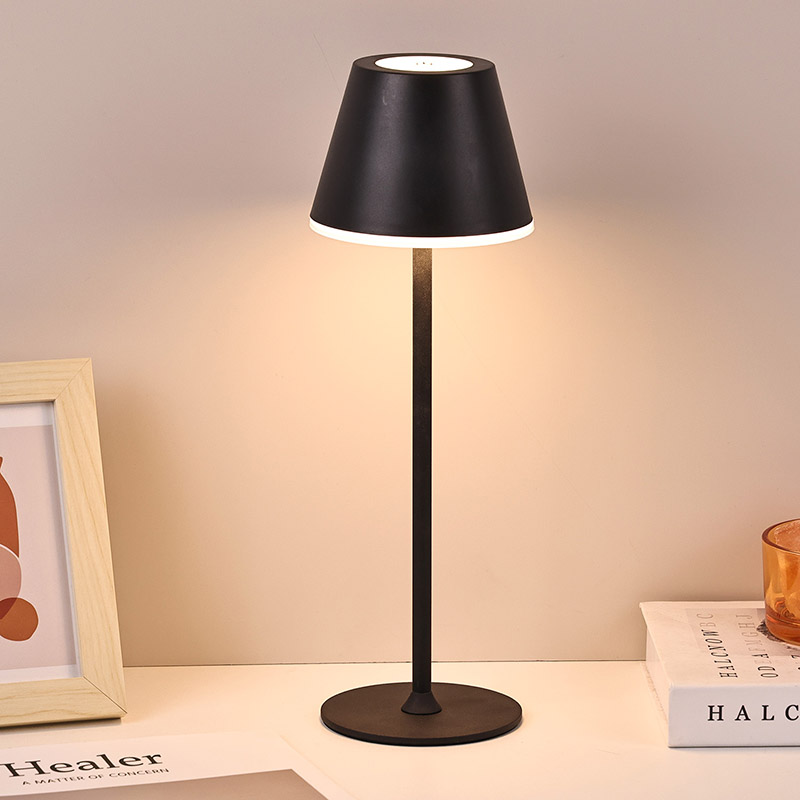 Montering ledningsfri led bordlampe er en berøringsknap på toppen af skærmcenteret. Kan styre lyskontakten og konverteringen af tre lysfarver, ligesom på billedet