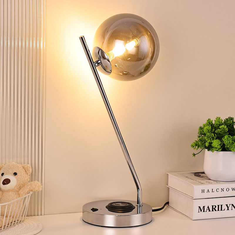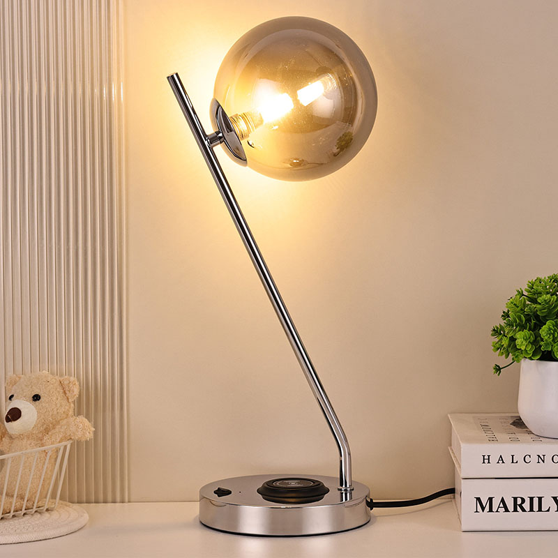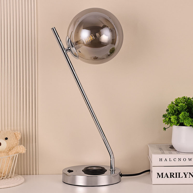 Bordlampe med mørk glaskugle med trådløs oplader er lavet i metalbase og glas. Glasdækslet giver ikke kun lampen en gennemsigtig og ren tekstur, men spreder også effektivt lyset, hvilket gør lyset blødere og mere ensartet. Metalbunden er finpoleret og behandlet, med en glat og delikat overflade, behagelig at røre ved, og udstråler en ædel og elegant atmosfære. Uanset om den placeres i soveværelset, stuen eller arbejdsværelset, kan denne bordlampe perfekt blande sig med det omgivende miljø og tilføje en moderne og kunstnerisk atmosfære