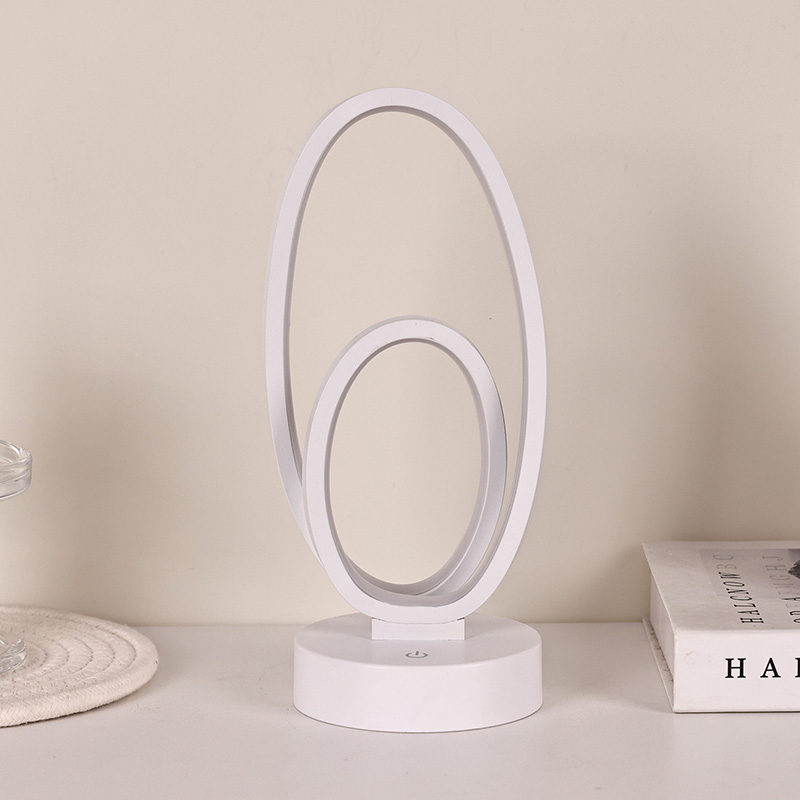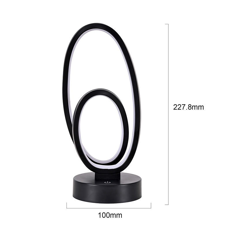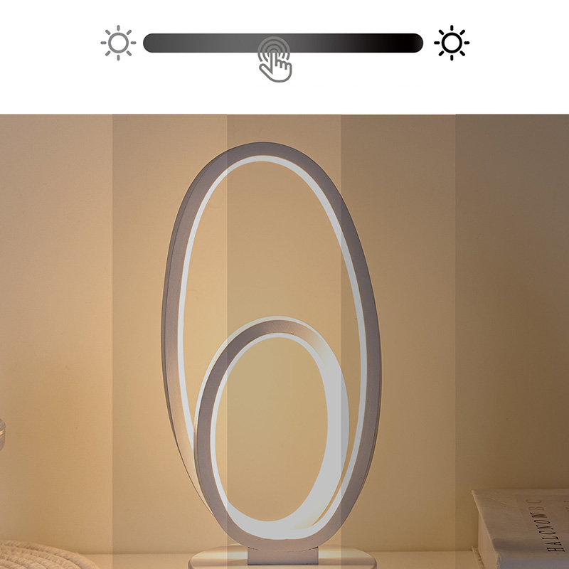 44*33*H23,5cmDobbelt cirkulær ringskærm RGB-skrivebordslampe har et design med dobbelt ring med elegante konturer, der er skitseret af minimalistiske linjer. Ved at kombinere metal og plastik af høj kvalitet har den enestående tekstur og et delikat touch. Ud over at være et lysværktøj, er det