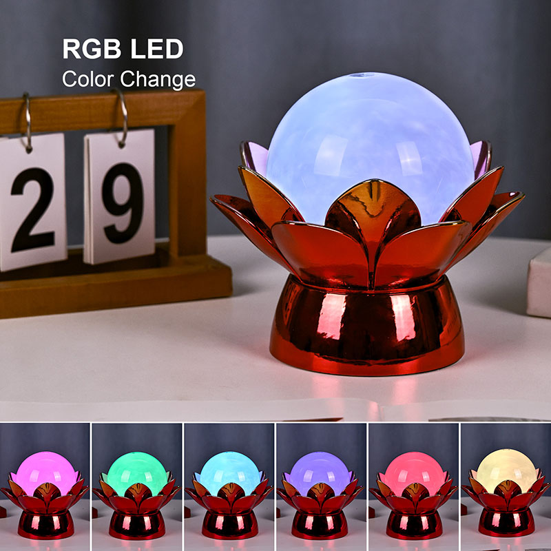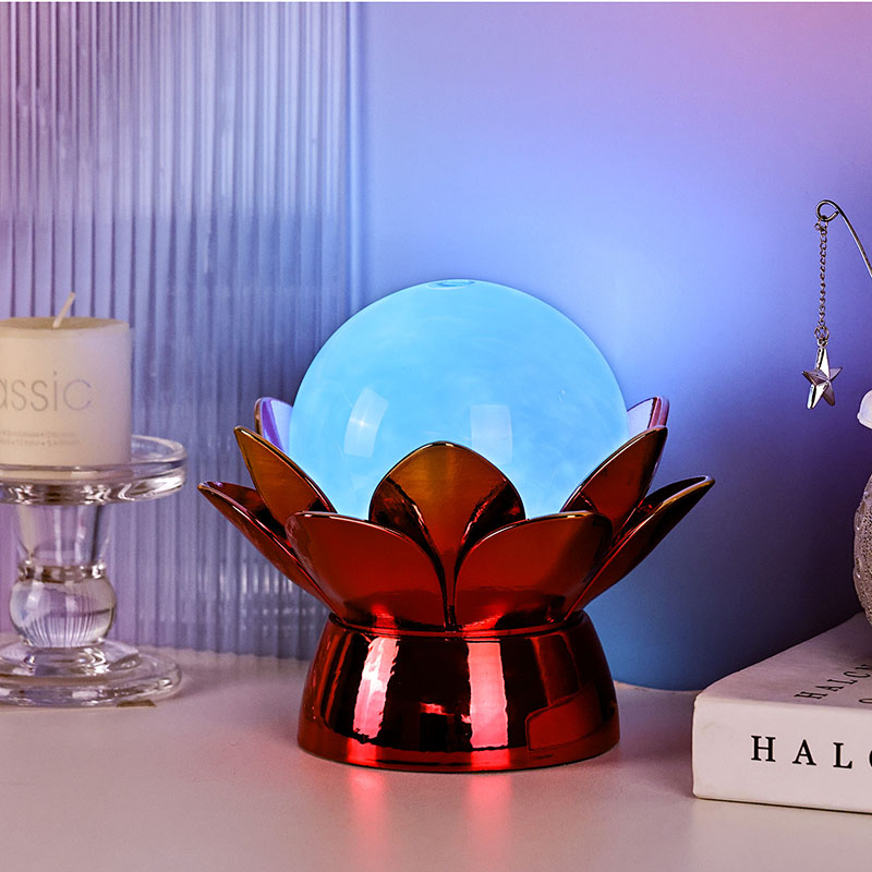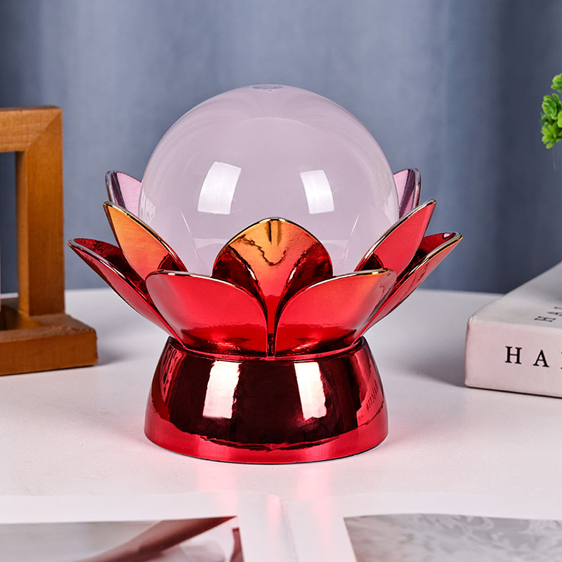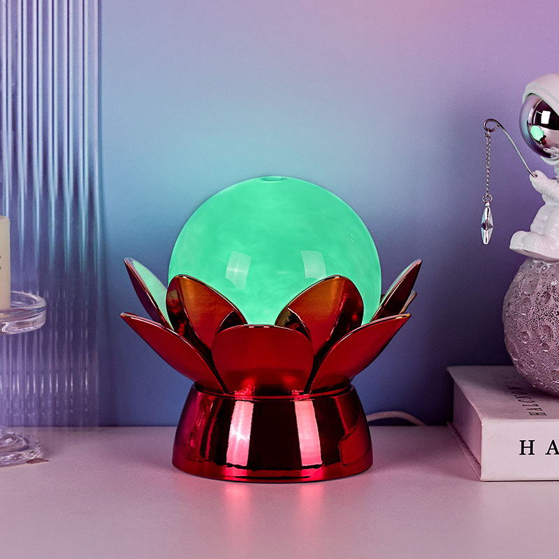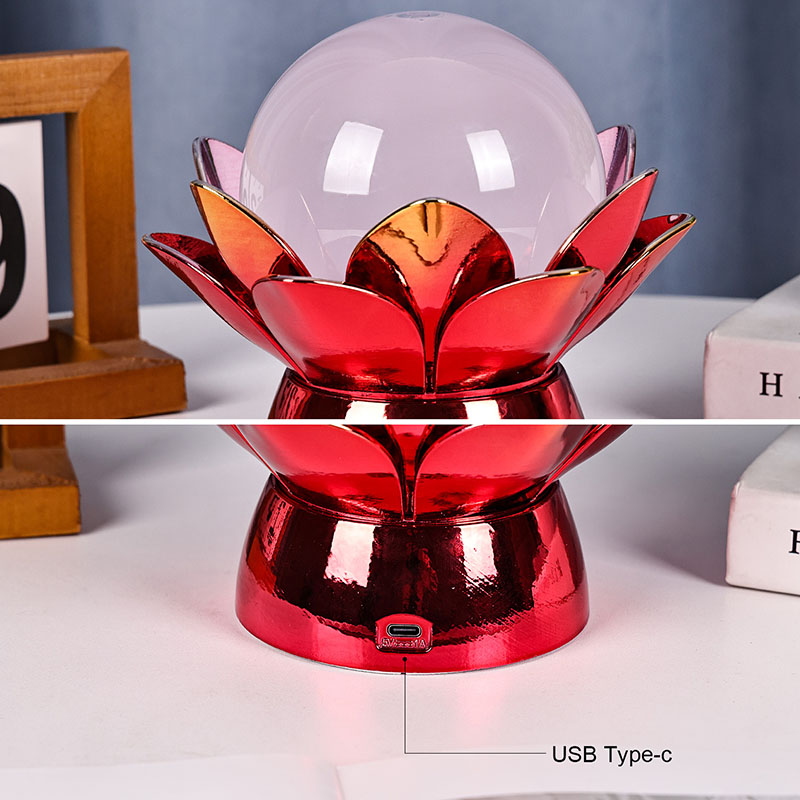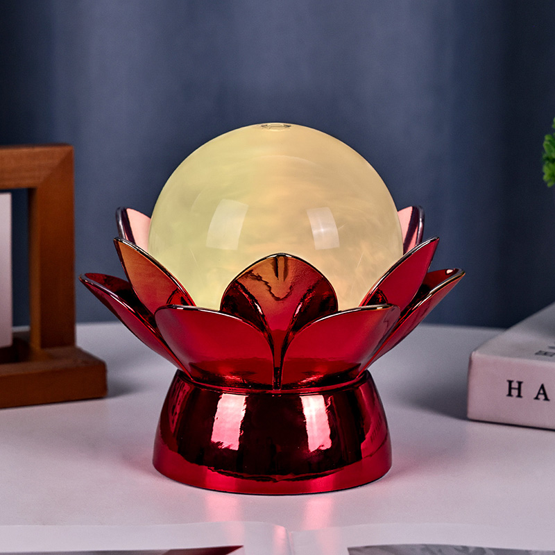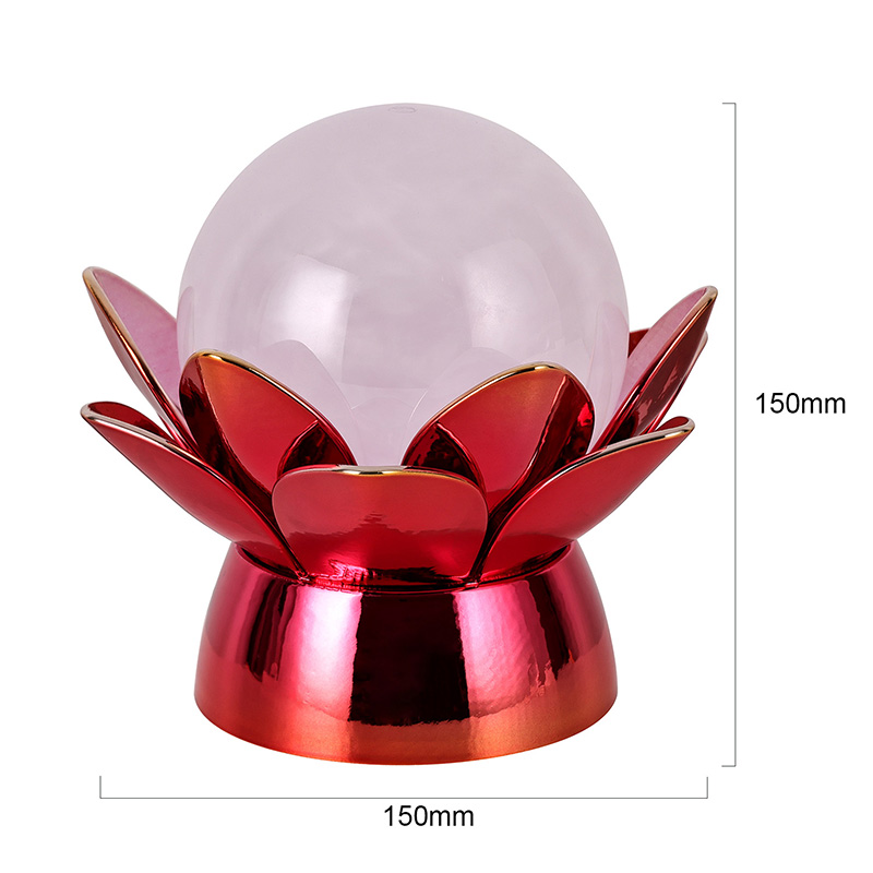 Basen er lavet af materialer af høj kvalitet og er lavet af poleret metal med en slående rød-guld finish, der reflekterer lyset smukt og tilføjer dybde og rigdom til dets udseende. Lotusdesignet tjener ikke kun som et æstetisk omdrejningspunkt, men bærer også symbolsk betydning med rod i østlige traditioner - repræsenterende oplysning, modstandskraft og harmoni. Den reflekterende overflade øger den visuelle effekt, hvilket får lampen til at lyse selv i omgivelser med svagt lys.