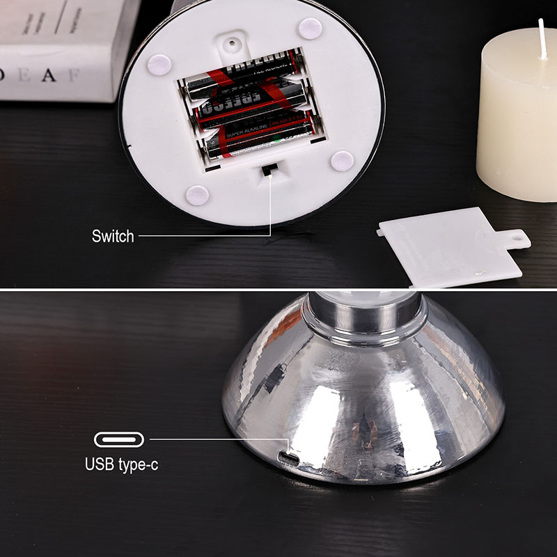 3 AAA batteriEuropean Style dekorative stearinlys er lavet af metal og plastik, med både top og bund lavet af metal. Toppen kan rumme almindeligt brugte stearinlys til belysning, og den midterste del er designet i en græskarformet europæisk stil.