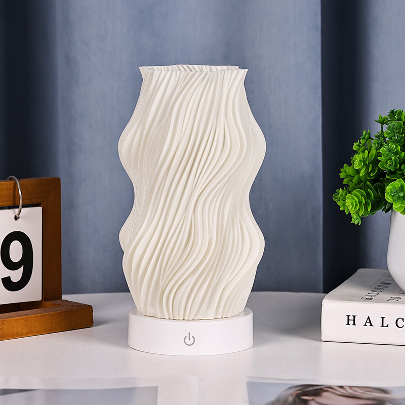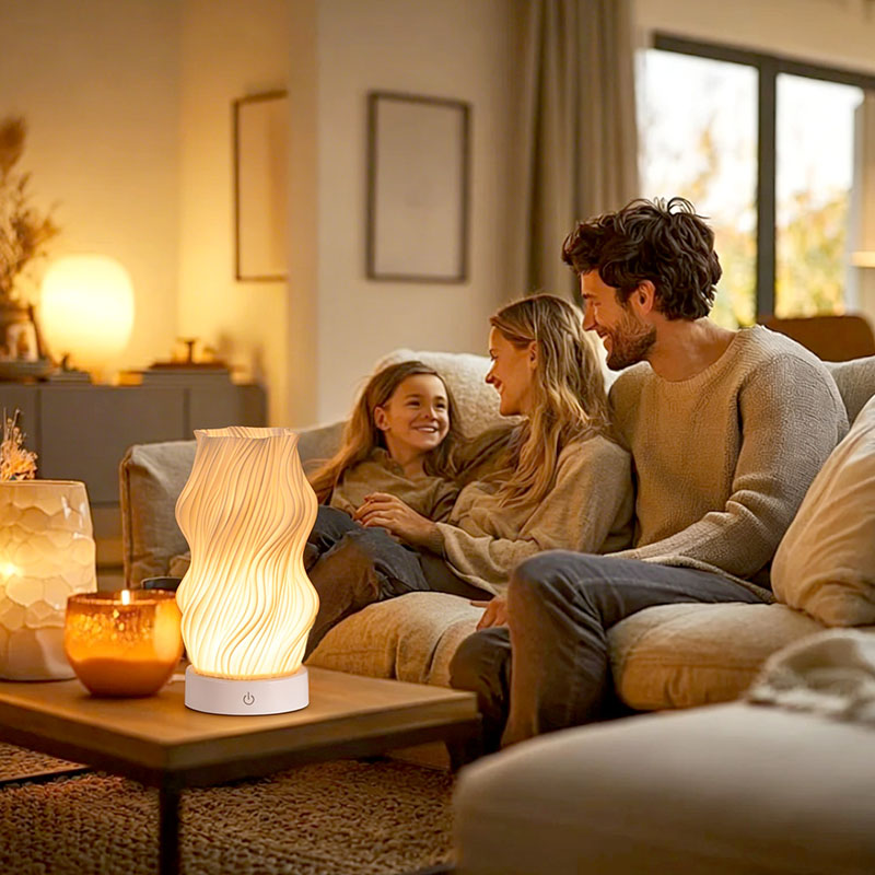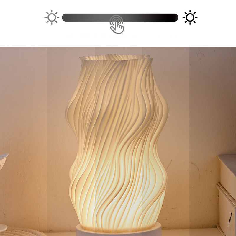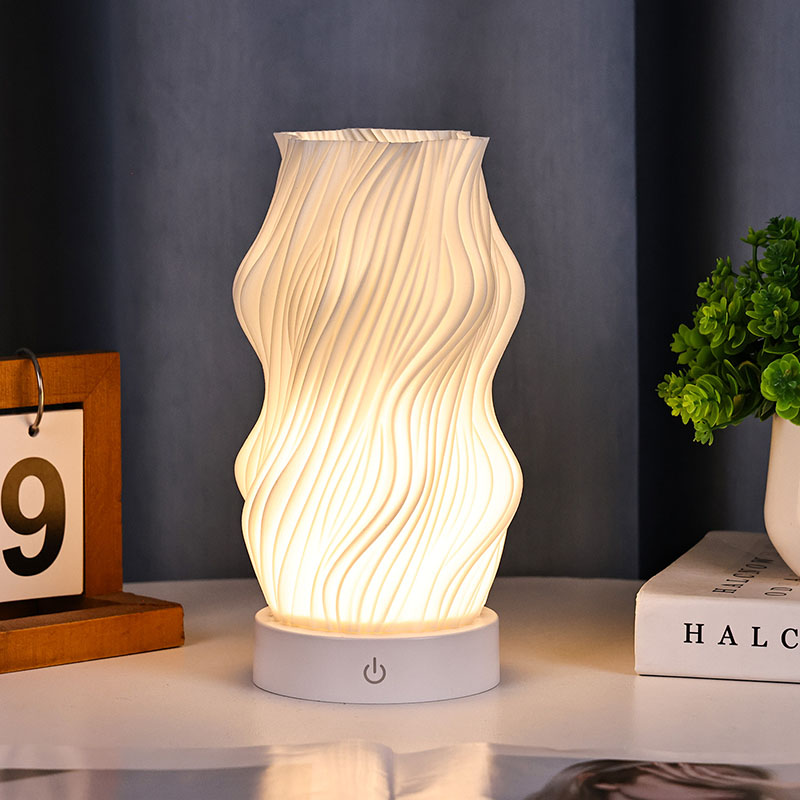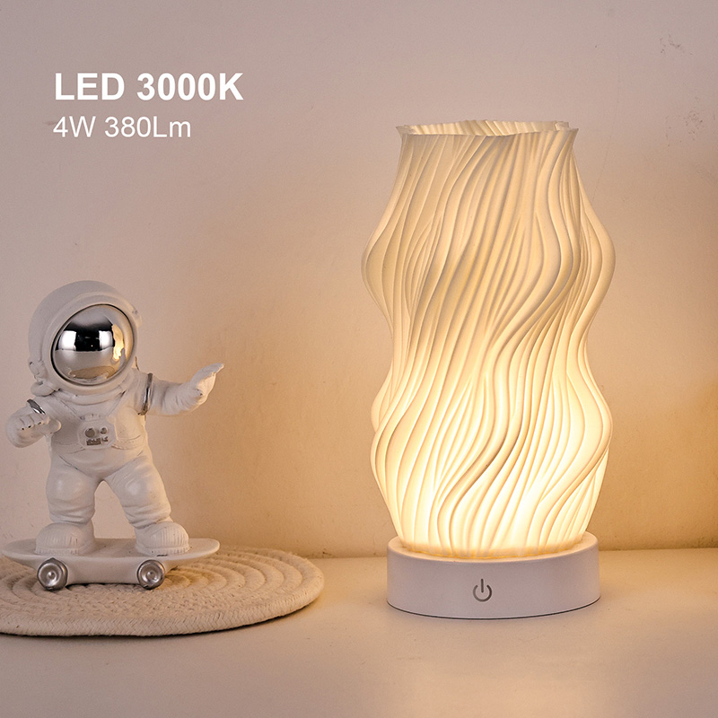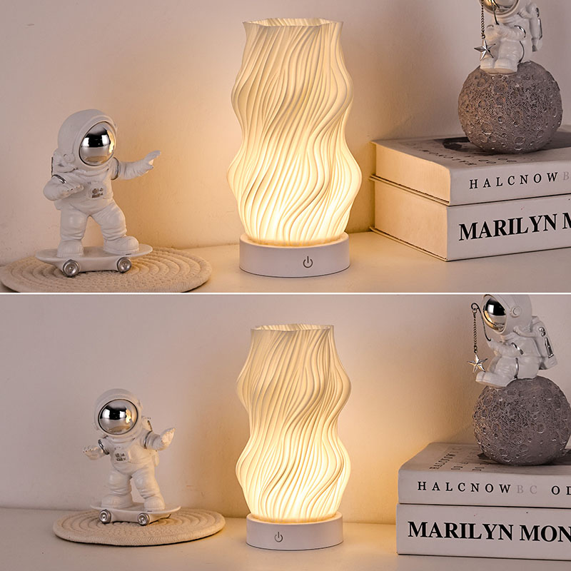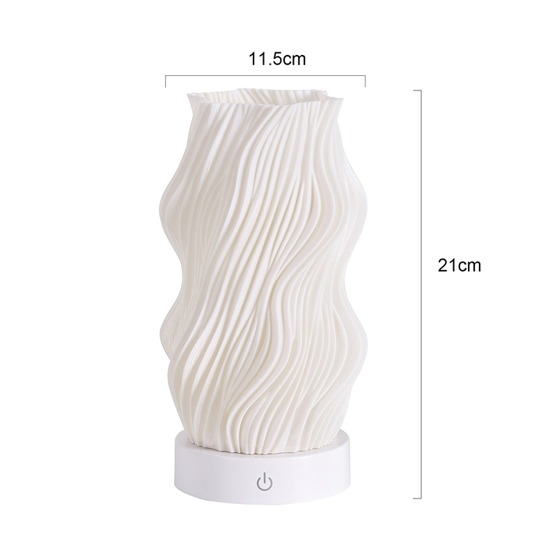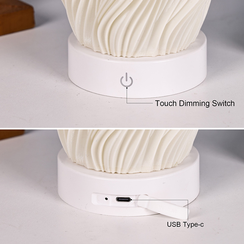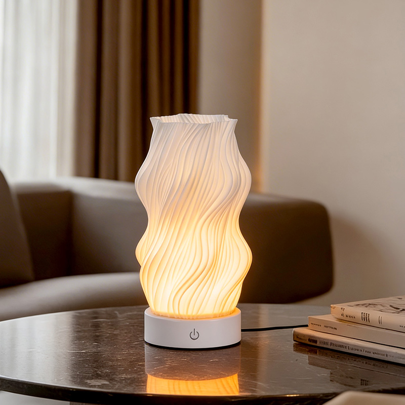 Flame Night Light-bordlampens krop er lavet af førsteklasses plastik og er (kompakt) og let. Det føles ikke kun varmt at røre ved, men er også nemt at rengøre og flytte. Det minimalistiske bølgede teksturdesign kombinerer kunstnerisk skønhed med praktisk, og blander sig ubesværet ind i enhver boligindretningsstil. Det er et perfekt, pladsbesparende accentstykke, der tilføjer et strejf af elegance til dit værelse.