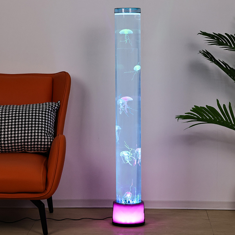 39,5*39,5*115cmLarge RGB Floor Jellyfish Lamp er en kreativ boligindretning, der blander moderne teknologi med naturlig æstetik, med drømmende lyseffekter og naturtro vandmandsdesign