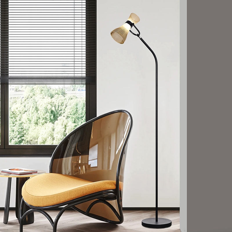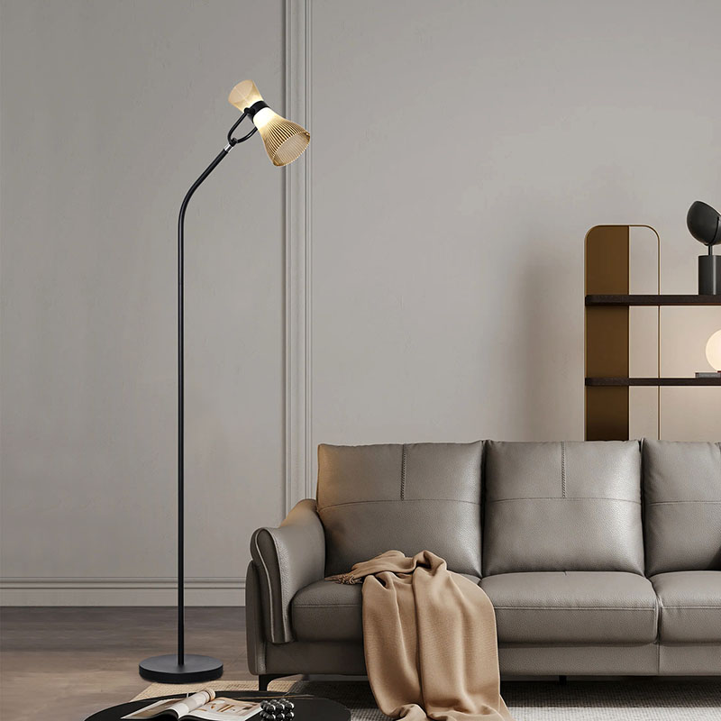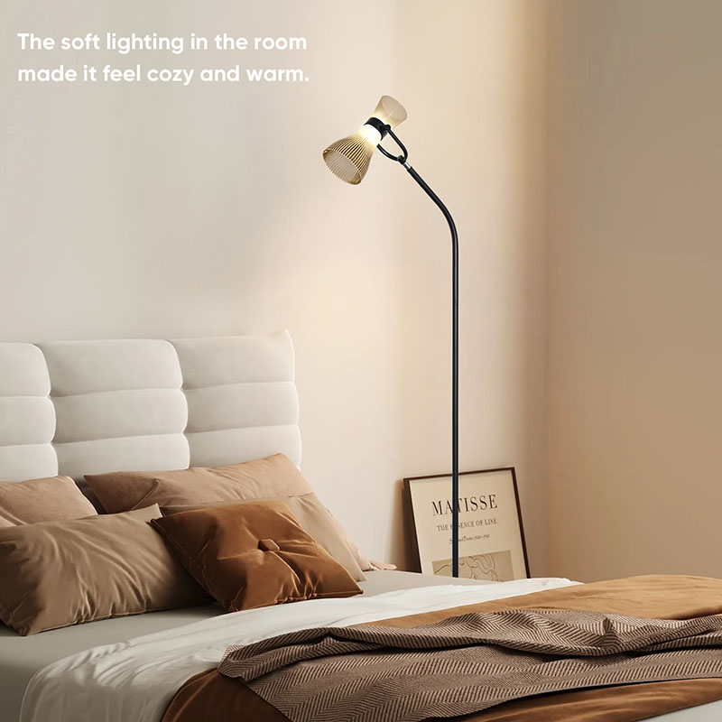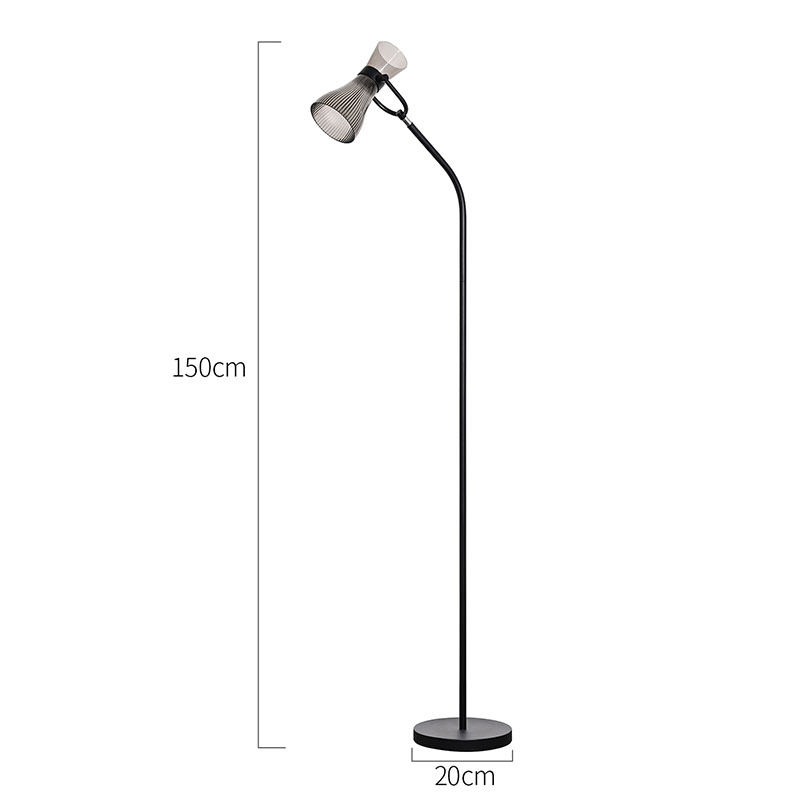 glatte og naturlige linjer, der viser en ædel og elegant atmosfære. Glaslampeskærmen giver ikke kun lampen en gennemsigtig og ren tekstur, men spreder også effektivt lyset, hvilket gør lyset blødere og mere ensartet. Uanset om det er placeret i stuen, soveværelset eller arbejdsværelset, kan Moderne LED gulvlampe med glasskærm perfekt