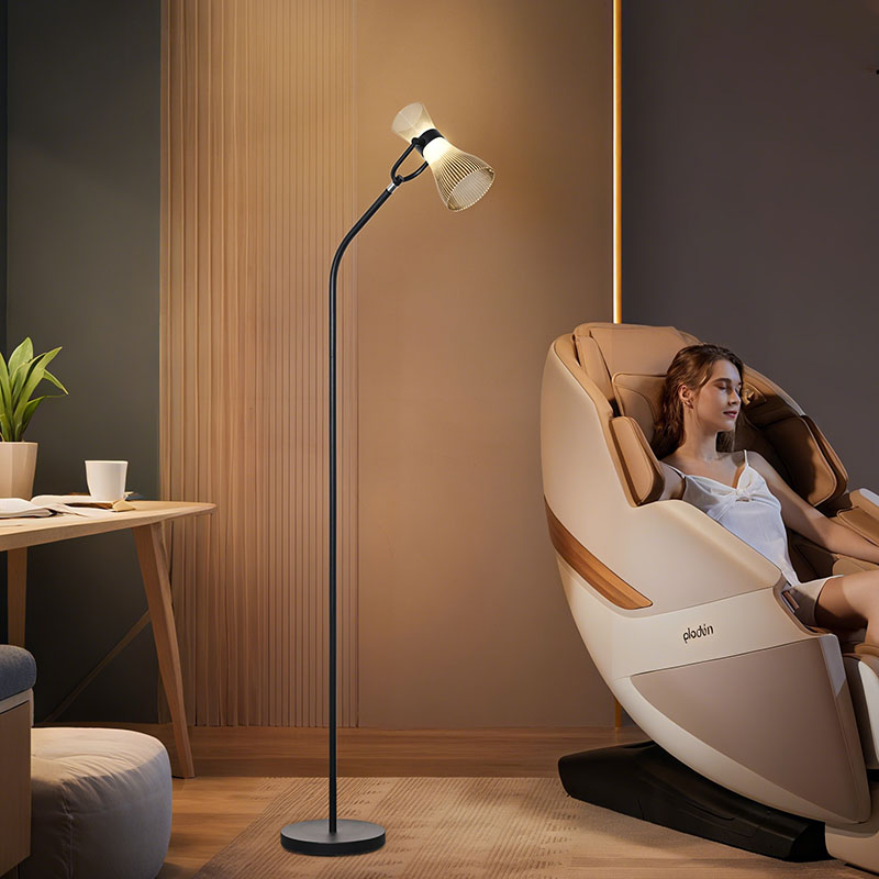 Moderne led gulvlampe med glasskærm er udstyret med avancerede LED-lyskilder, der udsender blødt og skarpt lys, der effektivt beskytter dine øjne og reducerer træthed og ubehag forårsaget af langvarig øjenbrug.