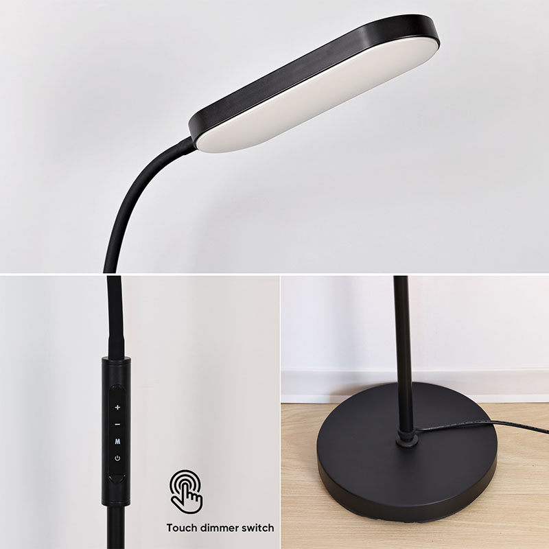 Moderne led stående lampe til stuen vedtager et minimalistisk designkoncept med en enkel og lineær overordnet form. Det enkelt polede design sparer ikke kun plads, men giver også belysningsarmaturerne en unik æstetik. Den sorte metalstang og base er blevet fint poleret og behandlet, med en glat og delikat overflade, blød glans og en lavmælt, men alligevel ædel atmosfære.