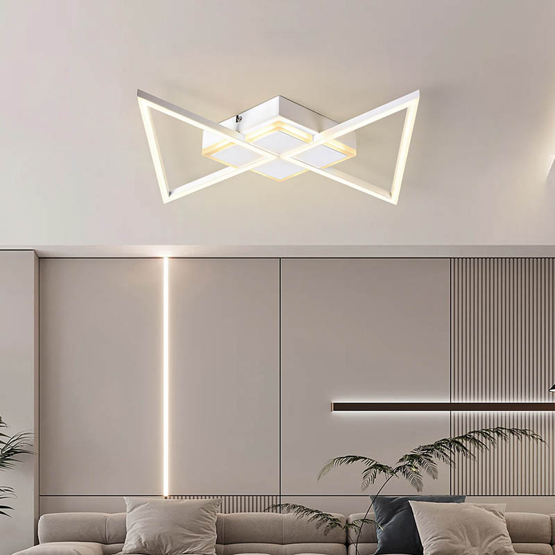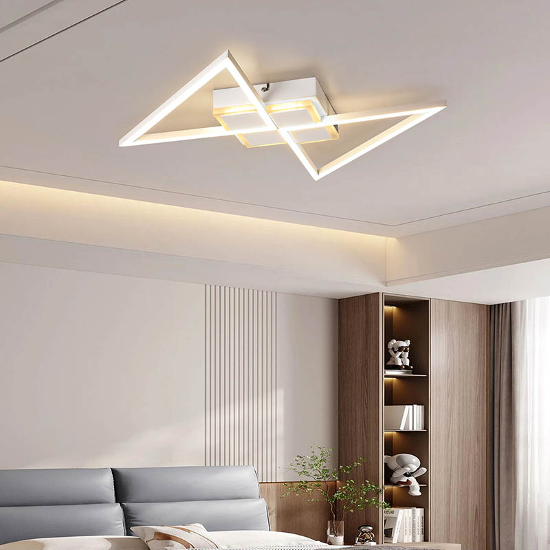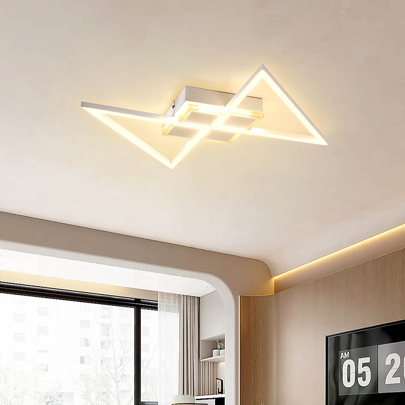 Det varme lys fremhæver også de arkitektoniske detaljer og indretningen af din hall, hvilket tilføjer dybde og dimension til rummet. Uanset om du er vært for et middagsselskab eller blot nyder en stille aften derhjemme, sørger Modern Metal Diagonal Triangle Chandelier for, at din hall er badet i et varmt, indbydende lys.