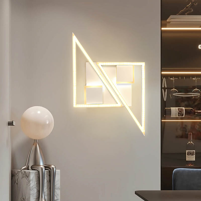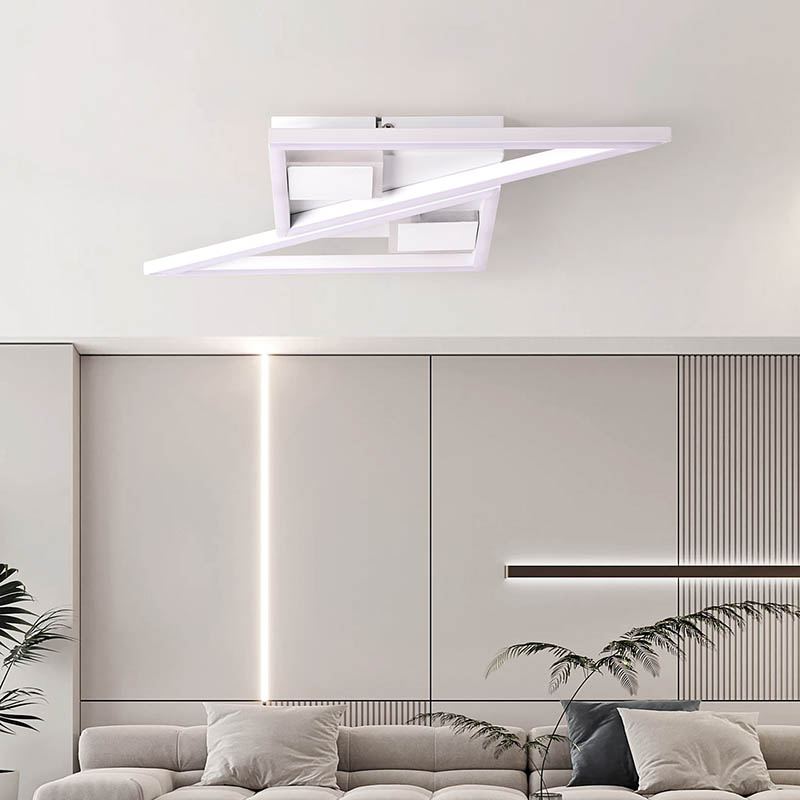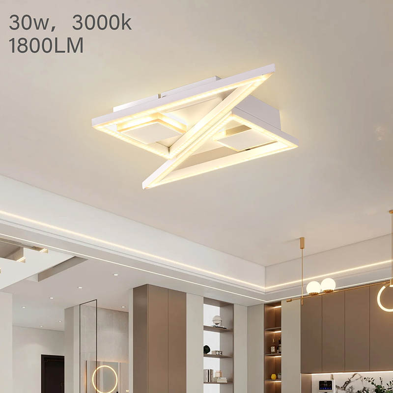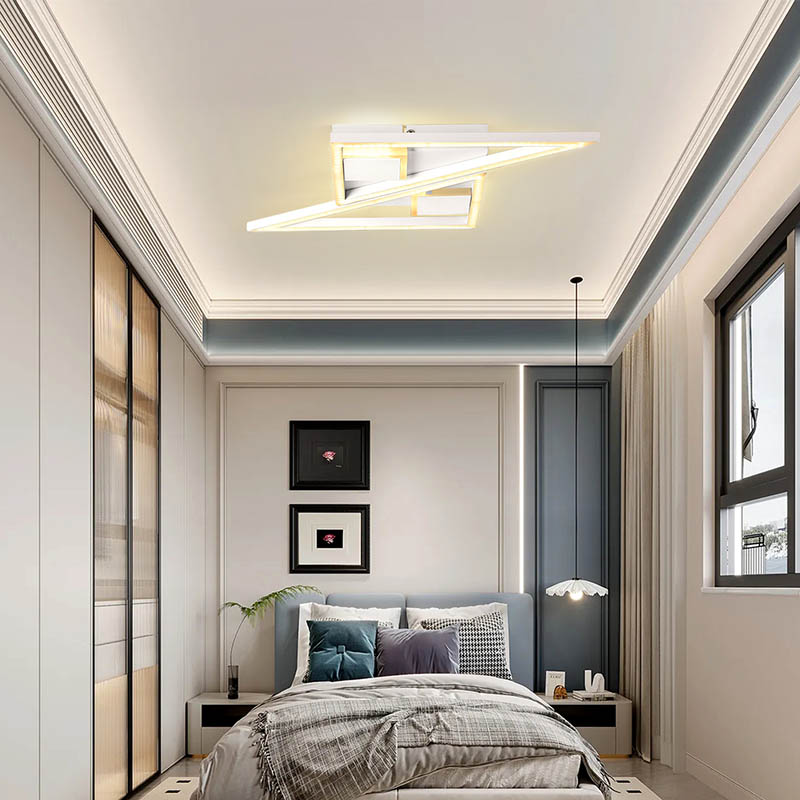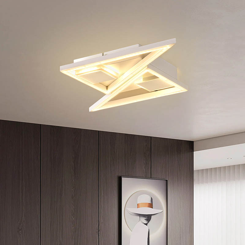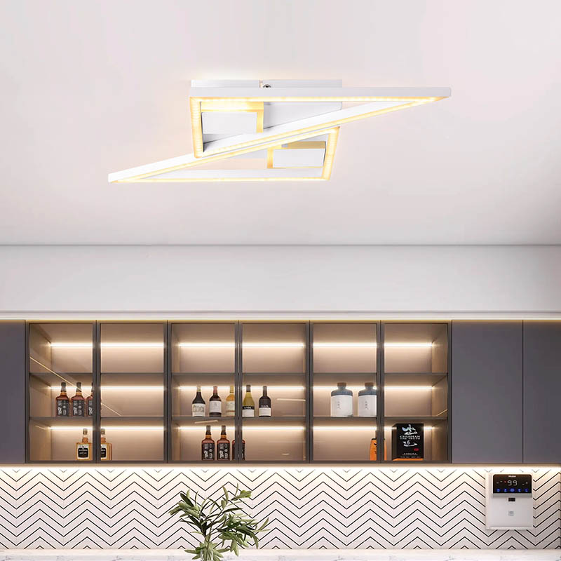 Den moderne simple design varm-let metal-loftslampe har et slående geometrisk design, kendetegnet ved krydsende planer og vinkler, der udstråler en følelse af moderne elegance. Designets rene linjer og minimalistiske æstetik gør, at den passer perfekt til moderne boligindretning. Lampens struktur, primært lavet af slidstærkt plastik, sikrer langvarig ydeevne, samtidig med at den bevarer en letvægtsprofil for nem installation.