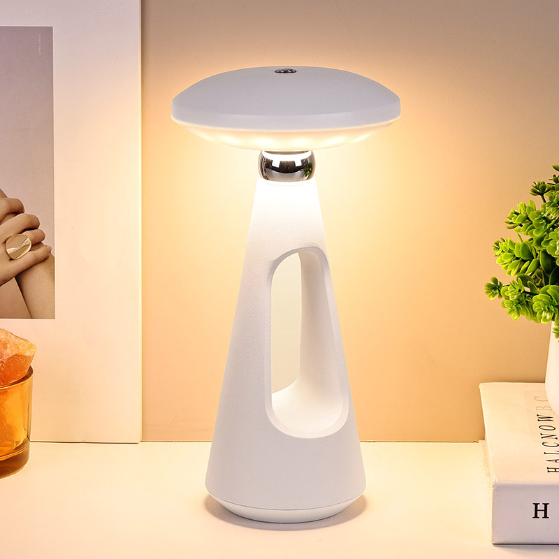 Tryk på DæmpningskontaktChampignon LED-skrivebordslampe med genopladeligt batteri med sine enkle og glatte linjer og ergonomiske form, svampeformet og nålehaledesign og LED-bordlampe med varmt lys i metal, er ikke kun et praktisk belysningsværktøj,