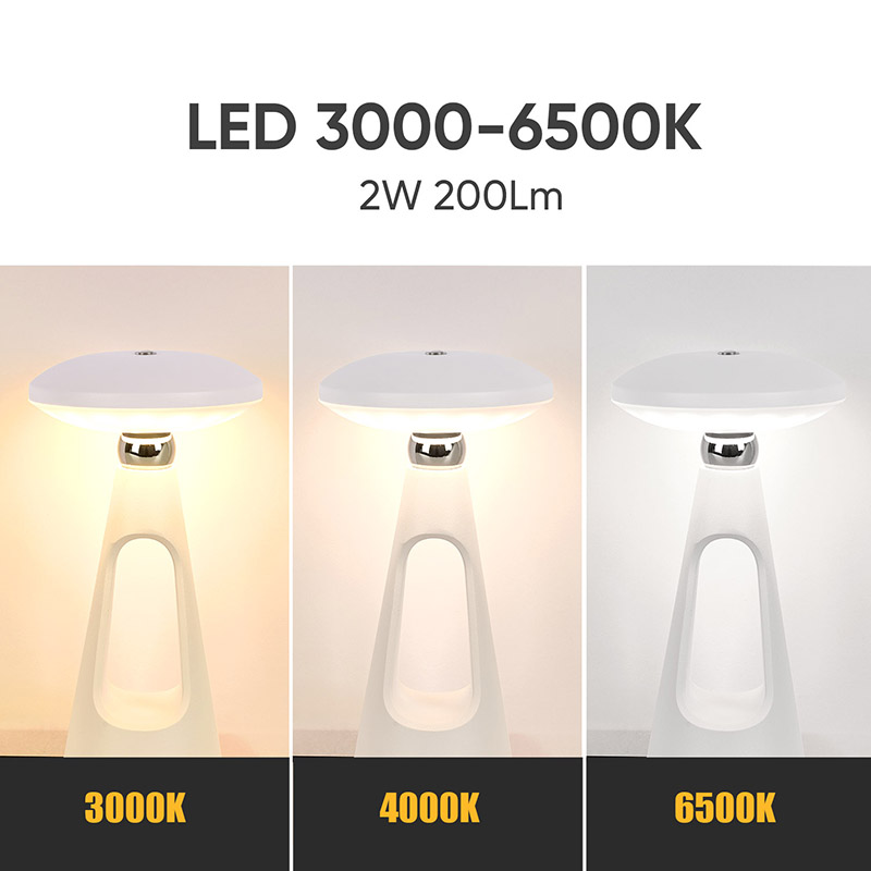Mushroom LED skrivebordslampe med genopladeligt batteri er udstyret med avanceret LED lyskilde, som udsender blødt varmt lys og kan justere lysets intensitet. Uendelig dæmpning kan effektivt beskytte dine øjne. Gennem simple operationer