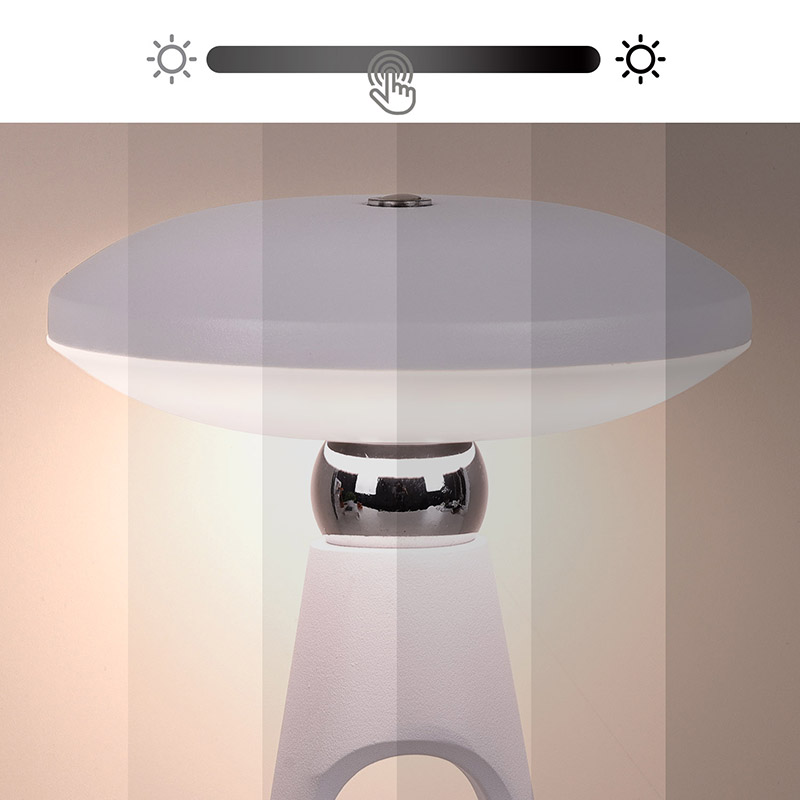 Der er en praktisk kontakt-berøringsknap på toppen af lampehuset, som kan trykkes let for at tænde eller slukke lyset. Langt tryk på knappen kan justere lysets intensitet. Samtidig understøtter denne bordlampe også flere strømforsyningsmetoder, som kan tilsluttes USB til brug eller oplades via det indbyggede batteri.