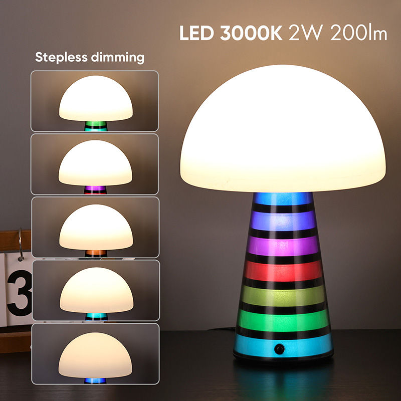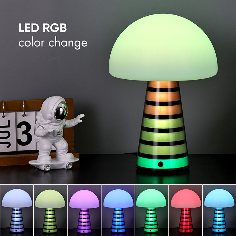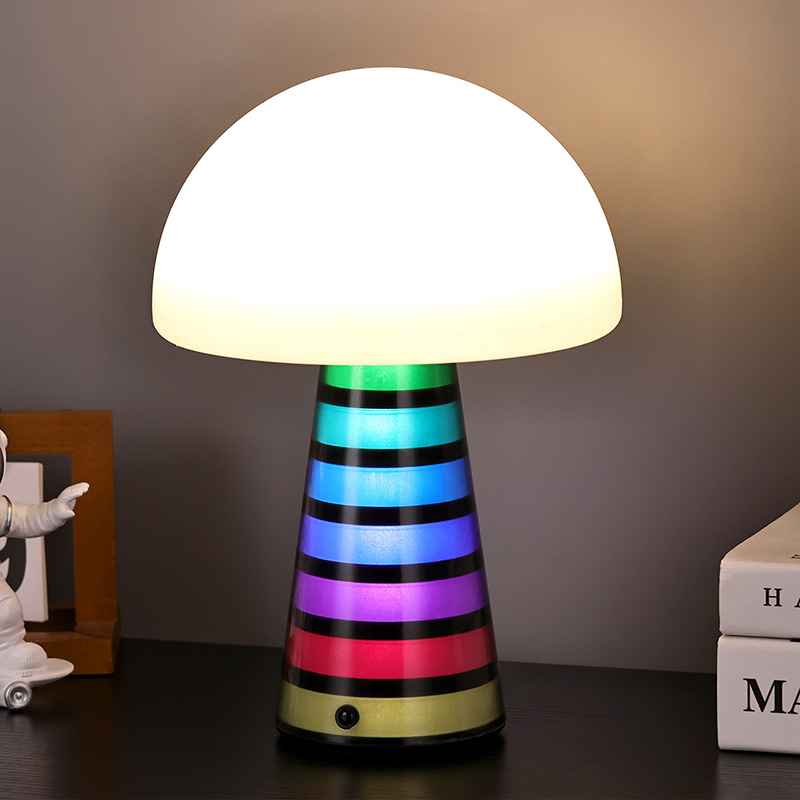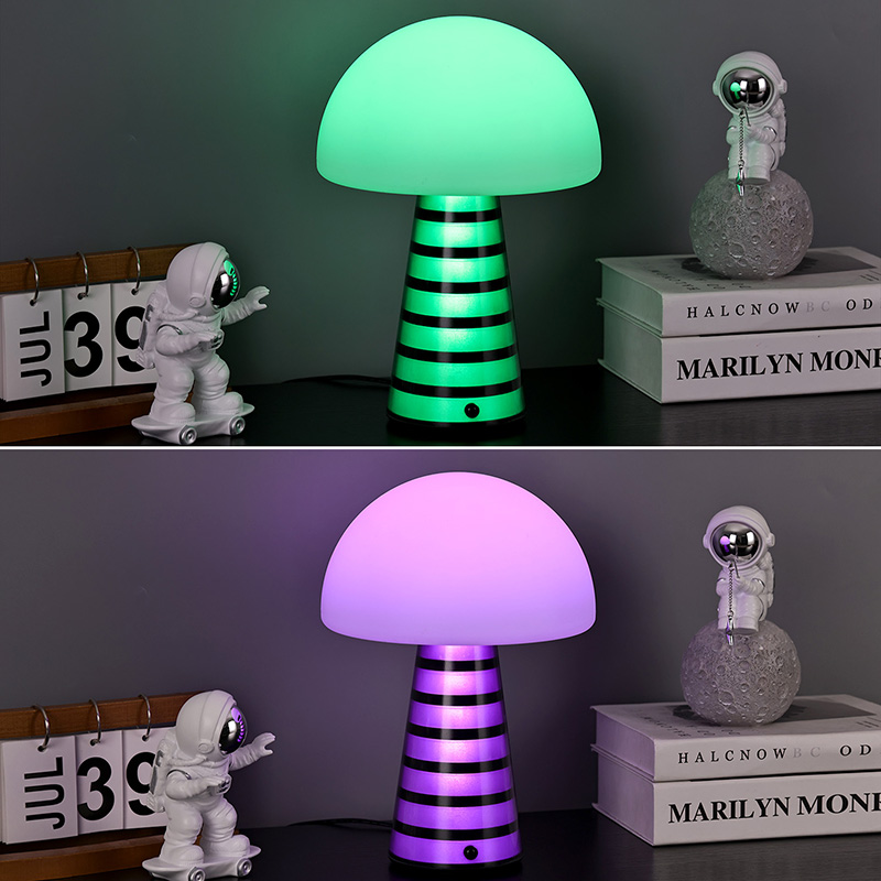 Digi RGB natlysDen overordnede stil på skrivebordslampen er sød, og PVC-materialet kombineret med det svampeformede design er meget populært blandt børn. Lygtehoved og lygtepæl kan både skifte farve, og farverne skifter på skift, hvilket gør farverne meget smukke. Derudover kommer bordlampen med en varm farve justerbar lysintensitet, som kan bruges som lyslampe. Det vil være meget harmonisk i et soveværelse i børnestil