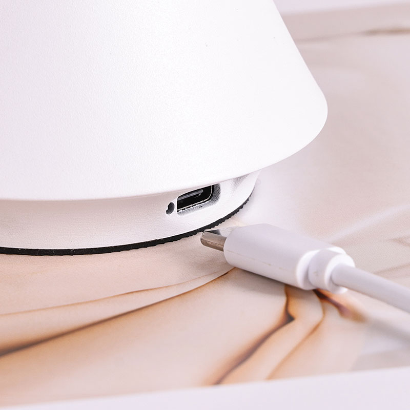 Der er en praktisk kontakt-berøringsknap på toppen af lampehuset, som kan trykkes let for at tænde eller slukke lyset. Langt tryk på knappen kan justere lysets intensitet. Samtidig understøtter denne bordlampe også flere strømforsyningsmetoder, som kan tilsluttes USB til brug eller oplades via det indbyggede batteri.