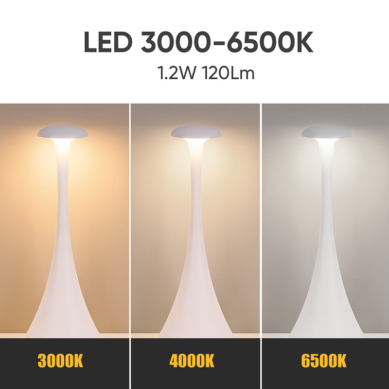 Tryk på DæmpningskontaktNydesignet LED-bordslampe med genopladeligt batteri med sine enkle og glatte linjer og ergonomiske form, svampeformet design og nålehaledesign og LED-bordlampe med varmt lys i metal, er ikke kun et praktisk belysningsværktøj,