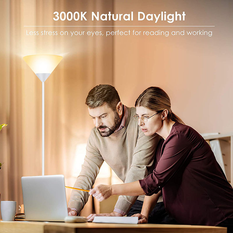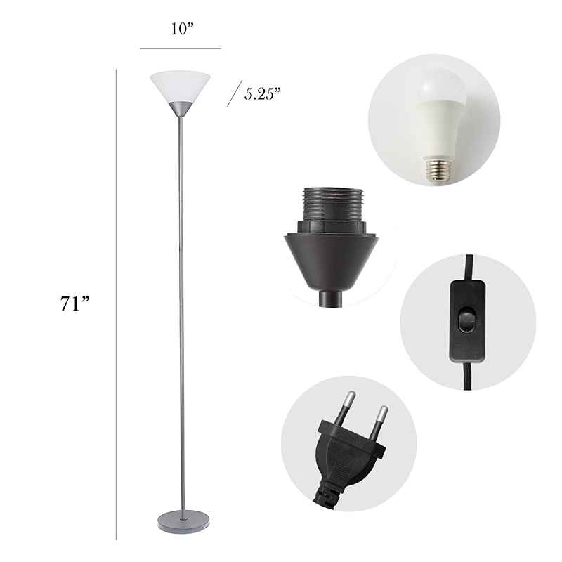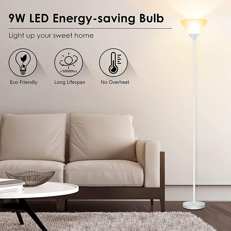 lampegulvet med 9W LED energisparepære. Produktpæren lyser opad for at undgå at blænde og beskytte dine øjne.