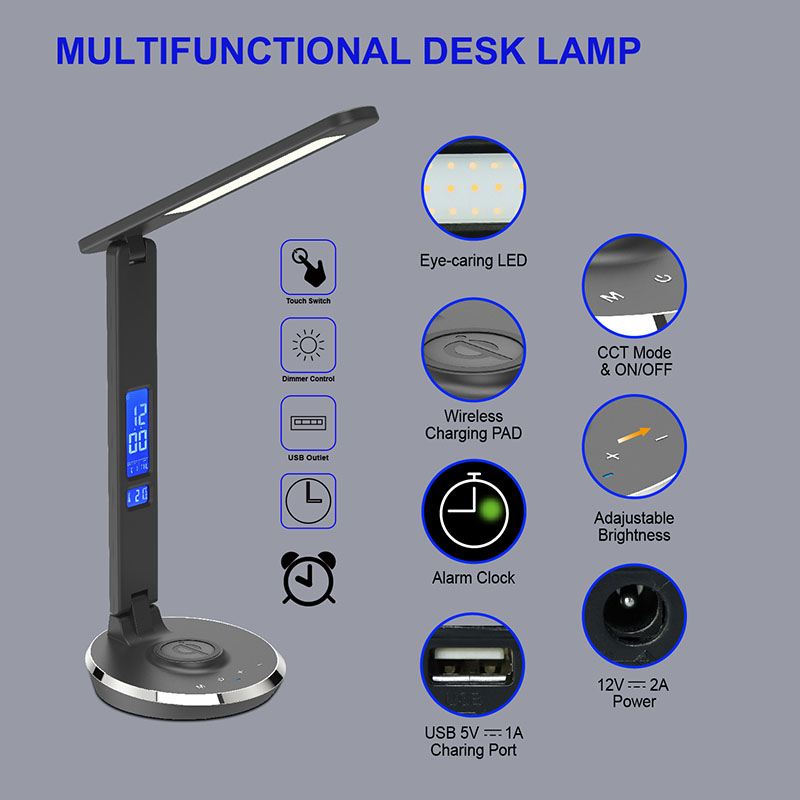 Lys dit arbejdsområde med stil, intelligens og bekvemmelighed som aldrig før med vores banebrydende 3-farvede LED-skrivebordslampe. Denne bemærkelsesværdige QI LED -skrivebordslampe med trådløs oplader er designet til Qi -professionel eller ivrig læser, der værdsætter både æstetik og funktionalitet, og omdefinerer, hvad belysning kan gøre for dit miljø.