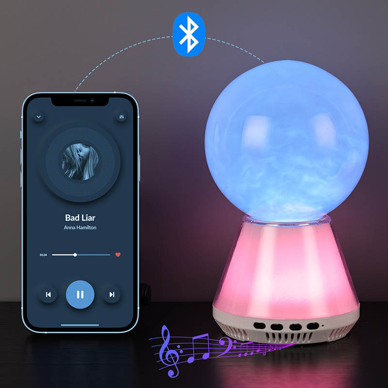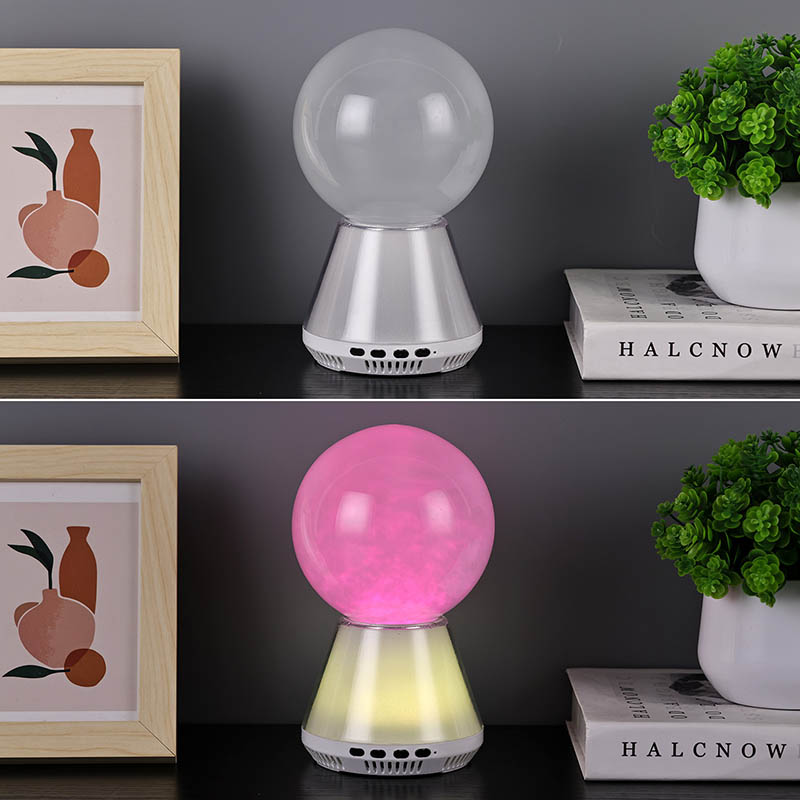 RGB LED-glimmerlampe med bluetooth-kontrol, der kombinerer væskestrømmen i en glaskugle til en skylignende tilstand, synkroniserede farveændringer mellem basen og væsken og Bluetooth-forbindelse til at afspille musik, er designet til at skabe en drømmende verden for dig. RGB LED glitterlampe med bluetooth kontrol er ikke kun et praktisk natlys, men også et magisk kunstværk.
