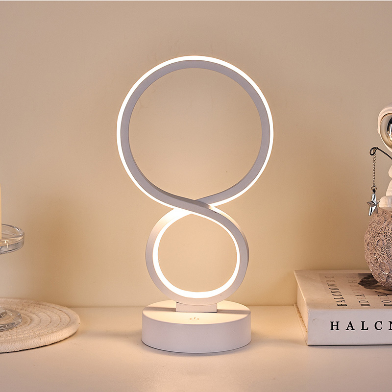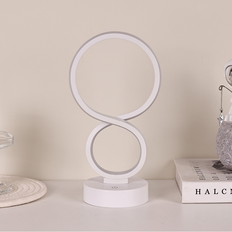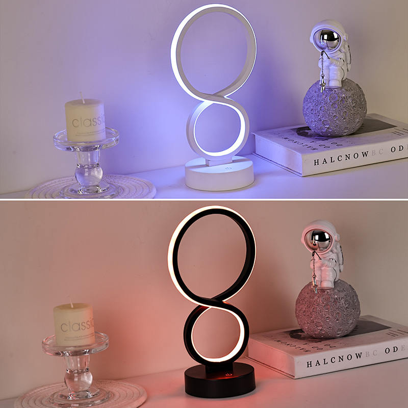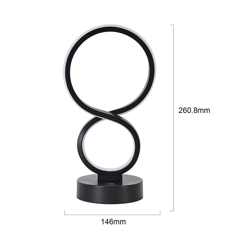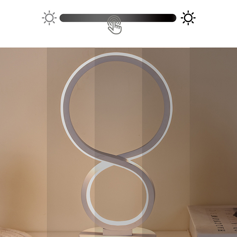 Inspireret af symbolet på uendelighed, der symboliserer skønheden i evigheden og cirkulationen, skitserer de glatte linjer en elegant 8-formet silhuet. Kombinationen af metal og højkvalitets plastik skaber en delikat tekstur med varme fangarme. Uanset om det er placeret i soveværelset, sengekanten, skrivebordshjørnet eller stuehjørnet, er det et slående landskab, der tilføjer en moderne kunstnerisk atmosfære til hjemmet