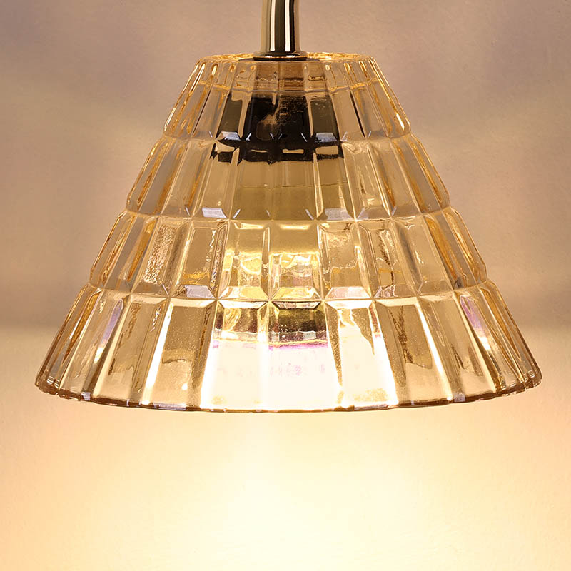 Designet af denne bordlampe indeholder både traditionelle og moderne elementer. Glasskærmen med sit sarte gittermønster udstråler en retro, men alligevel stilfuld stemning, der blødt spreder lyset og skaber en varm, behagelig atmosfære. Lampehuset er lavet af slidstærkt metal med en gylden varm tone, der ikke kun giver en visuel følelse af varme, men også tilføjer et strejf af sofistikering. Dens enkle og elegante form kan problemfrit passe ind i forskellige boligstile og bliver den perfekte accent til at lyse op i dit liv.