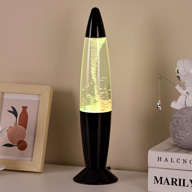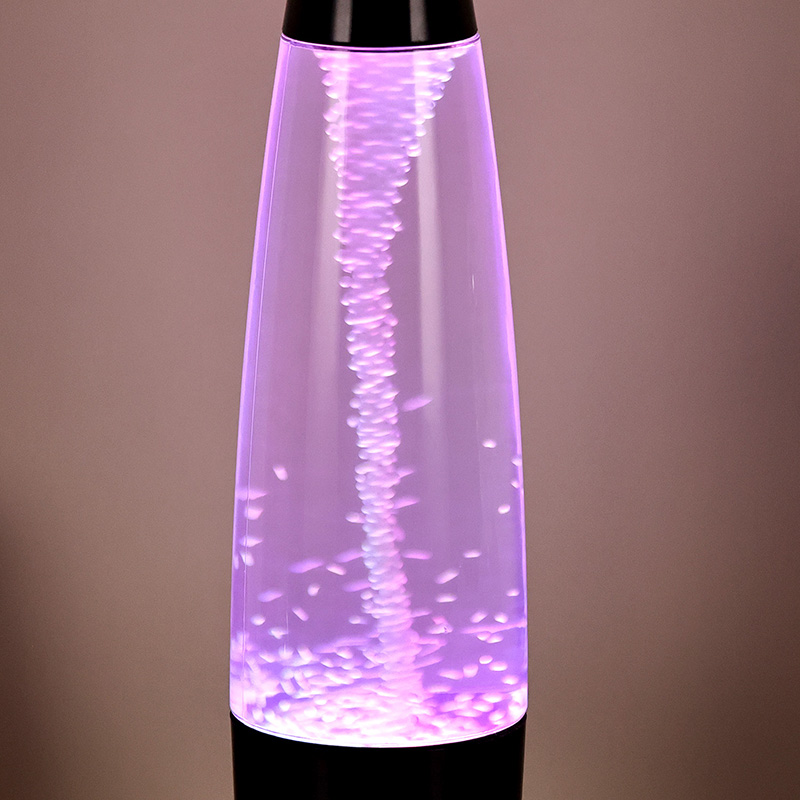 Den største egenskab ved Tornado glitter natlampe er, at den lille motor i bunden af flasken roterer, driver vandstrømmen, får vandet inde i natlyset til at begynde at rotere, driver det lille runde skum i toppen af vandoverfladen, og snart danner en tornado vandsøjle. Designinspirationen til dette produkt kommer fra tornadoen i naturen, som simuleres ganske realistisk